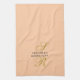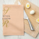 Personalized elegant refined chic kitchen towel, customizable with monogram, initial letters and name. Modern soft premium look peach, pastel orange background, elegant gold calligraphy script handwritten initial letters, and stylish trendy charcoal gray typography for the name. Beautiful and useful, for you or as a thoughtful custom gift for her, under 20 dollars. Elevate your kitchen and dining decor with this unique linen. Suitable as housewarming, new homeowner or perfect host kitchen essentials gift. Even to stage a house for sale and make it more attractive for potential buyers.