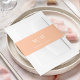 Wrap your wedding invitations in style with this elegant wedding envelope belly band. Designed with a solid peach colour background, it features a clean, simple layout highlighting the modern bride and groom’s names in a mix of classic calligraphy script and refined typography. A subtle monogram adds a personalised touch, making it perfect for a minimalist wedding with a timeless yet contemporary feel.