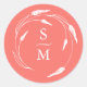A modern yet elegant peach monogram wedding sticker features unique floral line art. Use the template fields to customise the bride and groom's initials. Customise the colour to suit your wedding theme. Perfect for wedding favours and envelope seals. To see more minimalist stickers like this visit https://www.zazzle.com/collections/pink_and_orange_wedding_invitation_suite-119260424362190840