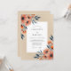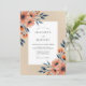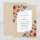 This design features a warm palette of peach poppies and deep navy blue leaves set against a soft tan backdrop. The painterly watercolor style creates a romantic and earthy atmosphere perfect for a late summer or fall gathering. Delicate botanical illustrations provide a sophisticated touch to the organic aesthetic.
