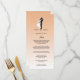 This design features a peach ombre background with a silhouette of a bride and groom. There is a cluster of stars in the shape of a heart behind the happy couple. Shown here as a formal wedding menu, this versatile design has plenty of convenient customisable text for you to personalise with your own party information. The reverse side of this elegant product has the same design. We have matching products with this graphic and assorted colours to choose from!
