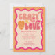 Celebrate the bride-to-be with these trendy and unique invitations. This peachy orange "crazy in love" retro themed invitation is customisable with your own details. Choose to have them printed, receive as a digital download or both!