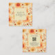 A peach orange flower florist business card featuring a groovy boho botanical floral pattern with an elegant vintage rustic watercolor style, whimsical girly details, and a QR code for easy branding.
