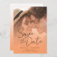 Peach Orange Fuzz Photo Elegant Script Wedding Save The Date