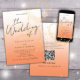 Peach Orange Fuzz Script Elegant QR Code Wedding Invitation
