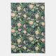 Peach Peonies on Dark Blue Kitchen Towel