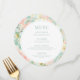 Peach Peony Flowers Mint Wedding Round Flat Menu