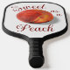 Show your love for summer with this peach theme pickleball paddle. This velvety, sweet peach design features warm and bright tones of blush, scarlet, amber, coral and lilac. Personalise by changing or removing the text. I created this pattern from an image in my original acrylic painting.