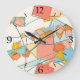 Peach Pink and Aqua Mid-Century Modern Abstract Large Clock