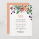 Peach Pink Burgundy Rose 90th Birthday Invitation