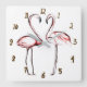 Peach Pink Flamingos Flamingo Tropical Square Wall Clock