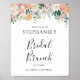 Elegant Botanical Floral Bridal Brunch Poster Welcome Sign. Customisable bridal brunch welcome sign featuring watercolor garland of peach and pink florals with foliage and greenery accents. Easy to customise. Get yours today!