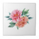 A beautiful peach and pink peony floral watercolor print on this tile for your kitchen or bathroom remodel.