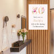 A peach coloured background. Decorated with foral numbers in faux gold and pink. Personalise and add a name and age.