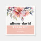 Peach-pink rhododendron flowers typography wedding napkin