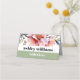 This stunning wedding escort place card features a gorgeous rhododendron branch with peach-pink flowers positioned at the top. To add a touch of elegance, sage green is incorporated at the bottom, creating a sophisticated look that complements the bold typography of the simple text. This combination results in a contemporary and fashionable design that is bound to leave a lasting impression on your guests.