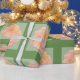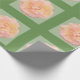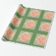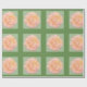 Peach Pink Yellow Rose Design on Green Background Wrapping Paper