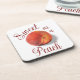 Show your love for summer with this peach theme coaster. This velvety, sweet peach design features warm and bright tones of blush, scarlet, amber, coral and lilac. Personalise by changing or removing the text. I created this pattern from an image in my original acrylic painting.