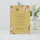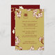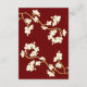 Oriental peach / plum blossoms, spring flowers in cream / ivory / white on a dark burgundy red / matte brass gold background with a simple rectangle double happiness symbol tea ceremony invitation card. An elegant and romantic floral chinese themed wedding enclosure card design which is whimsical, modern and classy.