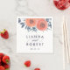 Designed to coordinate with our Peach Poppies wedding invitation and accessory collection, these personalised modern floral wedding napkins in a chic colour palette of navy and coral are perfect for your cocktail hour or wedding reception. Design features a grouping of watercolor poppy flowers in peach and coral, surrounded by leaves and buds in dusty navy blue and faded hunter green. Add your names and wedding date in modern midnight blue lettering embellished with decorative swashes.