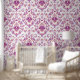 Peach Purple White Damask Floral peel and stick Wallpaper