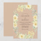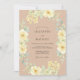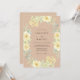 This design features a warm tan backdrop adorned with a delicate watercolor arrangement of buttery yellow roses and ranunculus. Soft sage green eucalyptus leaves and tiny golden floral clusters add an airy, bohemian touch to the botanical display. Ideal for a romantic spring or summer event, the palette evokes a sun-drenched, organic aesthetic.