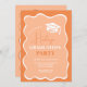 Graduation party planning just got a whole lot prettier with our reach, orange coral retro wavy frame photo graduation invitation. Get ready to celebrate in style! Our grad invitation features a modern brush script font on a wavy squiggly frame with cap topper. All the colours are editable. Perfect Class of 2024 celebration! Add your photo at the back.