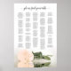 This gorgeous wedding seating chart features a photo of a long-stemmed pale orange or light peach coloured rose lying on its side reflecting in a pool of water with waves and ripples. The title reads "please find your table" in elegant lacy script calligraphy. There is space for the up to 250 names with the names of the couple and wedding date below. Wonderful way to help your guests find their tables while making your reception more beautiful.