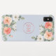 Peach Rose Dusty Blue Floral Monogram Case-Mate iPhone Case