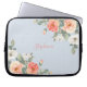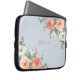 Peach Rose Dusty Blue Floral Personalised Laptop Sleeve