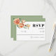 Peach rose flowers sage green floral wedding RSVP card