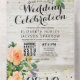 Peach Roses Rustic Wood String Lights Wedding RSVP All In One Invitation