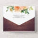 Peach Roses Rustic Wood String Lights Wedding RSVP All In One Invitation