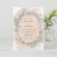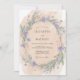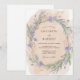 This design features a soft peach watercolor wash as a backdrop for a lush arrangement of lavender stems and purple wildflowers. The delicate greenery creates a natural and airy feel, perfect for a rustic springtime event. Sprigs of foliage and small blossoms provide a whimsical and romantic aesthetic.