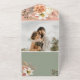 This modern boho all-in-one wedding invitation combines romantic peach and ivory flowers with soft sage green and blush tones. Designed with a QR code RSVP section and space for your website, it's perfect for couples who want a beautiful yet convenient option.  A lovely fit for rustic garden weddings or fall celebrations.