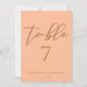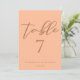 Peach is the new trending colour for summer wedding decor. Our sweet peach table number card features elegant light brown script for a trendy, minimalist event in the afternoon for a feminine bride who loves to stay current and modern.