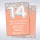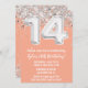 Peach Silver 14th Birthday Party Invitation