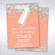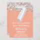 Peach Silver 7th Birthday Party Invitation
