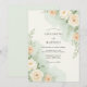 A romantic composition featuring soft peach and cream blossoms with delicate green foliage. The watercolor washes create an airy, ethereal mood. This design evokes a gentle, natural charm perfect for a spring or summer affair.