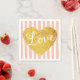Peach Stripes Fake Gold Love Heart Cute Girly Napkin