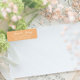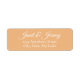 Peach colour return address labels for your wedding invitation mailing envelopes featuring the future bride and groom's name in white, stylised script. Personalise your labels by editing with your own names and address.