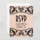 Elegant and chic Vintage Swirls RSVP Postcard featuring a distressed faux textured coral orange background and swirl flourish borders. This antique looking design is perfect for a vintage themed wedding. Easy to customise, simply add your wedding details in the text fields provided. Click "Customise It" to find more personalisation options.