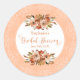 Peach Watercolor Floral Bridal Shower Classic Round Sticker