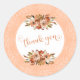 Peach Watercolor Floral Thank You Classic Round Sticker