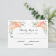 This lovely contemporary wedding RSVP card coordinates with the "Peaches and Cream Watercolor Floral" wedding invitation. It features watercolor blooms in bright shades of peach, pink and creamy white in the upper corners of the card. Personalise the sample response date with your required RSVP date. A perfect choice for spring or summer weddings.