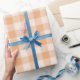 Peach White Chequered Gingham Pattern Wrapping Paper