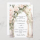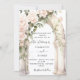 A large marble arch decorated with peach and white coloured roses. Personalise and add your party details.