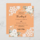 For an elegant and romantic wedding. A peach coloured background decorated with white florals, roses and white lace. Personalise and add your names and details.