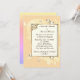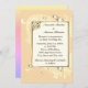 Peach-coloured background with Diamonds and Frame with bow Image Wedding Invitation on the front. Peach, pink, purple, and blue background on the back of this flat card. Convert this for any occasion. Add a photo of the happy couple to where the frame is and add text on the back instead.