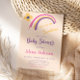 Celebrate your little sunshine with this adorable peach-toned baby shower invitation. Featuring a hand-drawn pastel rainbow, sweet flower accent, and playful typography in yellow, pink, and purple hues, this charming design is perfect for honouring a baby girl. The soft peach background adds warmth and elegance, making it ideal for a joyful and heartfelt celebration. Easily personalise with your event details to make it uniquely yours!